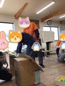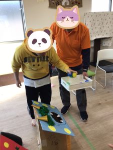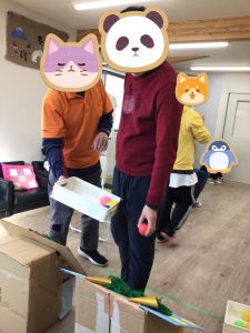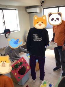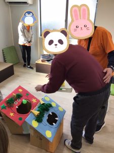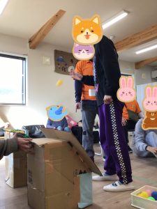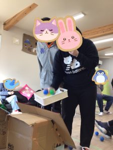 本日1月30日の午後にイベントのレクリエーションで行う予定の👹鬼の口へのボール入れを行いました